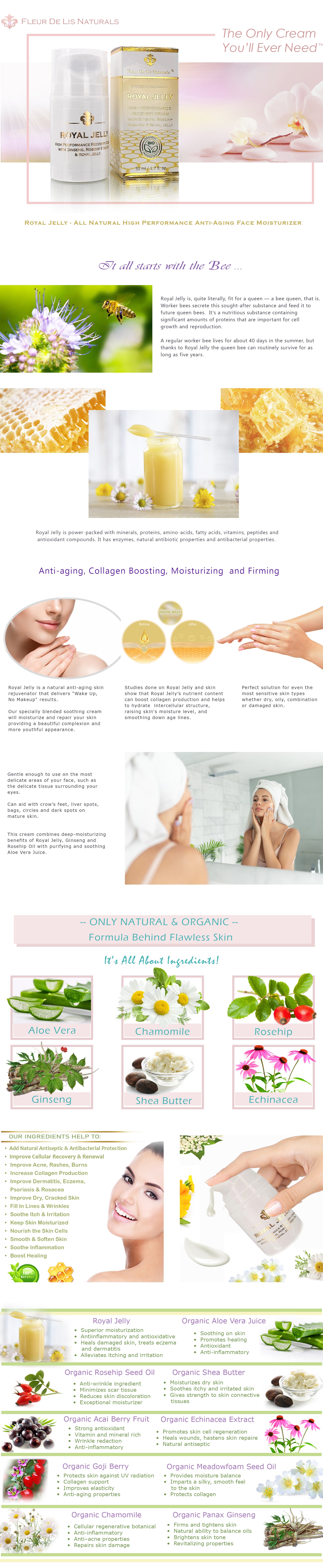 I was introduced to Royal Jelly before I could truly appreciate what a wonderful product it is. Now that a few years have passed 🤦🏼‍♀️, I absolutely love what it does! I like organic ingredients and products that work like they advertise. With none of the “Nasties” in this product, and all of the healthy natural oils and extracts, I’m sure you will love it as much as I do!!